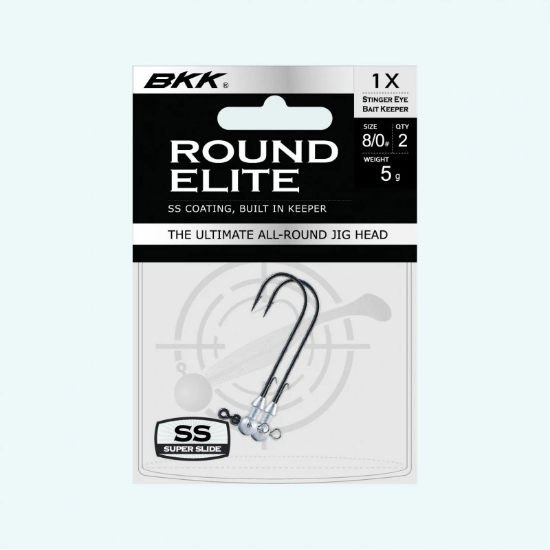 De BKK Round Elite serie wordt geleverd in een breed scala van maten en gewichten voor een enorme reeks kunstaas en voor meerdere vissoorten. Deze veelzijdige ronde jigkop, gegoten rond een lichte draadjighaak met ronde bocht, heeft een superscherpe naaldpunt, SS afwerking en een precisie gegoten kop voorzien van een enkele draadhouder om schade te minimaliseren en het kunstaas op zijn plaats te houden.