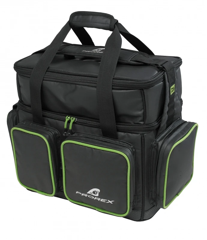 Geleverd met 2 grote tackleboxen van 36 x 22,5 x 5,5 cm en een extra diepe zacht plastic kunstaasbox van 36 x 22,5 x 8,5 cm. In de diepe doos kan extra groot zacht kunstaas worden opgeborgen dat niet in de platte kunstaasdozen past. De rubberen bodem van de zak voorkomt het binnendringen van vocht van onderaf. Zowel voor- als zijvakken bieden ruimte voor kleinere kunstaasdozen voor jighaken enz. De gevoerde schouderriem zorgt voor comfort, zelfs als de tas volledig geladen is. Het grote dekselvak biedt ruimte voor grote voorwerpen en kan via klittenbandverdelers naar wens worden aangepast. Al het buitenmateriaal van de tas’s is waterafstotend en houdt korte buien tegen zonder doorweekt te raken.