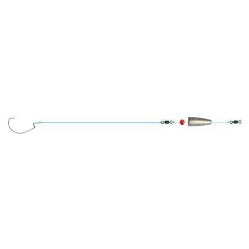 Kant-en-klare uitrusting voor het vissen met Carolina rigs, een zeer effectieve methode als de vis niet wil bijten. Maak een spinstop en laat de zinker op de bodem komen. Het kunstaas zal nu verleidelijk naar de bodem glijden. De offset haak maakt het mogelijk om in moeilijke omstandigheden te vissen.