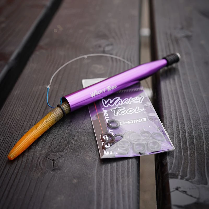 De Wacky Tool is een superhandig hulpmiddel wanneer een Wacky of Neko Rig aan de orde is. Plaats jig en haak in de tool, installeer de O-ring. Klaar!