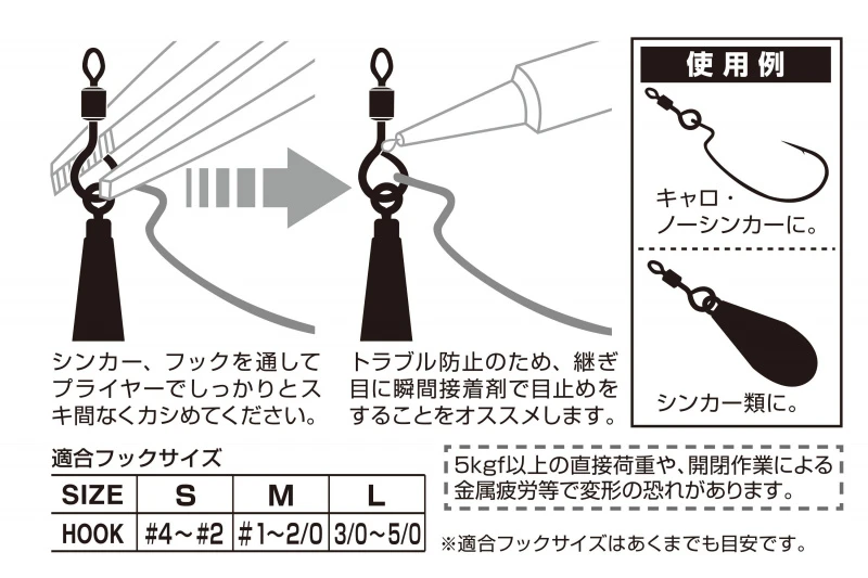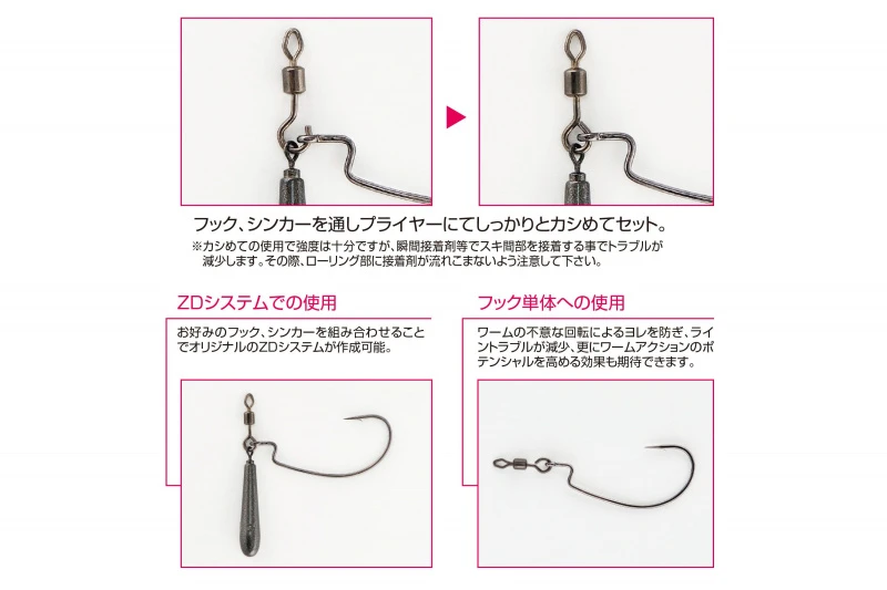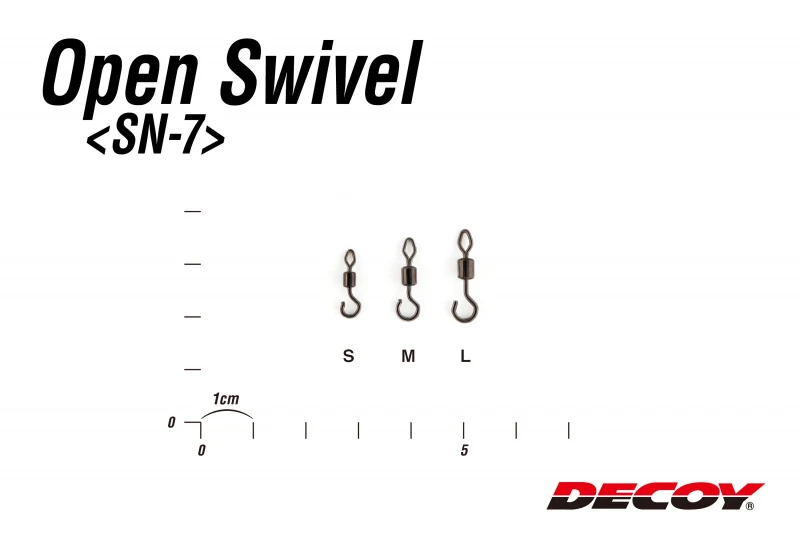 De Decoy Open Swivel SN-7 is het essentiële element voor het maken van een jika-rig op maat. De jika-rig bestaat uit een haak en een druppelvormige zinker die aan het open uiteinde van de Decoy Open Swivel SN-7 wordt bevestigd. De wartel wordt met een tang samengedrukt en met een druppel lijm verzegeld. Deze snelle en gemakkelijke rig maakt een nette presentatie die kan worden gegooid in de vegetatie of gesleept langs de bodem. Breid uw arsenaal aan vistechnieken uit met de Japanse kunst van het jika-riggen en de Decoy Open Swivel SN-7.