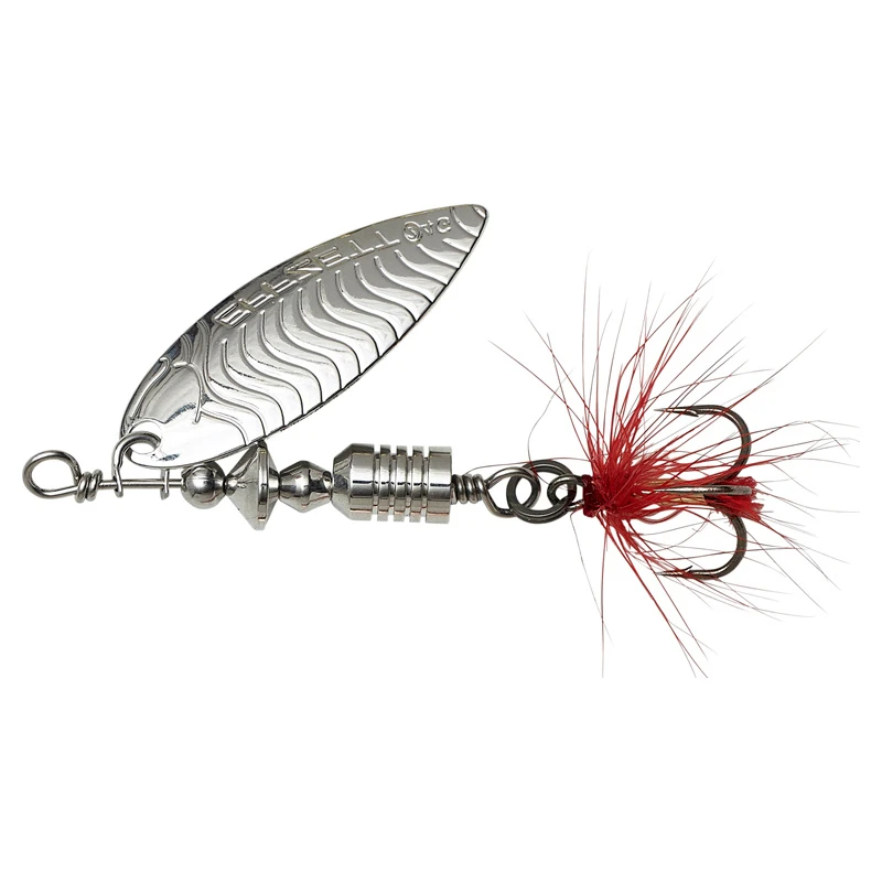 Deze spinners worden geleverd met een UV-actieve veren dreg die zeer zichtbaar is voor de vis en tegelijkertijd is de dreg het aangrijpingspunt voor de vis, dit verhoogt de hookup ratio aanzienlijk. Verkrijgbaar in #2, 4g, #3, 6g en #4, 10g.
