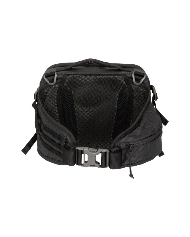 - Molle webbing op de heupriem maakt twee riemen overbodig en maakt bevestiging van berenspray, waadstok of Flyweight fleshouder mogelijk; klein rekbaar buitenvak voor extra