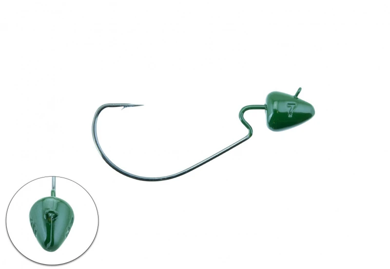 De SZ Offset is een wierloze jighaak met een conisch gevormde kop op een offset haak die gemakkelijk beweegt tussen gras en vegetatie.