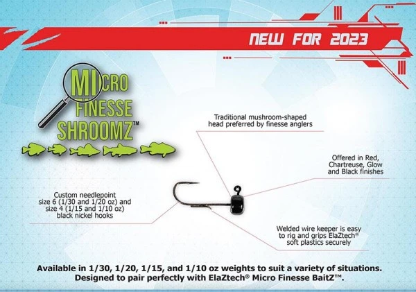 De Z-Man Micro Finesse ShroomZ miniatuur crappie / panvis / multispecies jigkoppen zijn vormgegeven in de klassieke Z-Man paddenstoel configuratie en passen perfect bij de Z-Man Micro Finesse ElaZtech BaitZ.